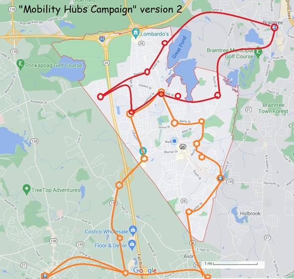 The NEW bus petition is on! Mobility Hub petition -- March 25, 2023 -- info below is from the OLD bus petition!Meeting on Wednesday Jan. 23 2023 meeting including Mobility Hubs: CSJ 101 Calition for Social Justice meeting at 6:30pm-8pm via zoom! Join Zoom Meeting: https://us02web.zoom.us/j/88429836679 Charter Petition to Randolph Town Council - we submitted over 250 signatures, certified in November 2022. Details below. Sign online petition (Change.org) - we have already submitted the offiicial petition but we'll presnet your name to the Randolph Town Council! Download official charter petition (sign and mail in, instead of online) Routes including Stoughton and neighboring towns (RandolphEmeraldNecklace.com) Call to Action (this webpage in a one-page printout) Right now, many residents in Randolph housing complexes have a long walk to get to the bus or commuter rail. That means they must pay for a car, even if they're committed to commuting by T. We seek to change that, so that residents can get to work without a car, saving a huge expense and improving the environment while reducing traffic in Randolph. This petition asks the Town of Randolph to set up a shuttle van or bus service, between under-served residential areas and transit stations and workplaces. For example, from the Rosemont Square apartments on Chestnut West, residents must walk across High Street plus a mile along Chestnut Street to get to the nearest bus stop, the #240 on North Main Street. We propose a town-run shuttle van to replace that long walk, and many others like it. We submitted a "Charter Petition", which entitles us to a hearing and a vote at the Randolph Town Council. We would like YOU to come and speak in favor of this petition! Tell your commuting story, and how a shuttle van would help -- come speak in person in Spring 2023, and/or write a letter before then. If the Randolph Town Council votes in favor, we would begin setting up a shuttle van in 2023. If the Randolph Town Council votes no, we have the right to put this issue on the November 2023 ballot. We would need your help for that too -- gathering petition signatures in spring/summer 2023. Setting up a shuttle van is expensive -- probably over a million dollars in annual expenses plus well over a million for initial setup. There's a state program called Mobility Hubs -- implemented in Boston and in Acton/Maynard and others -- in which Randolph should participate.